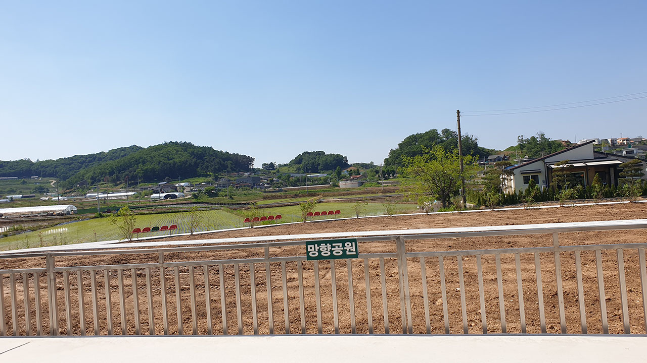 건물 옆으로 이런 빈공간이 있어서 여기에 수목을 키울 예정인가봅니다. 망향공원으로 이미 이름까지 지어놓았네요. 저희가 방문한 날도 날씨가 좋았는데, 글라스도어를 활짝 열어두어서 이런 외부를 보며 식사를 했습니다.
