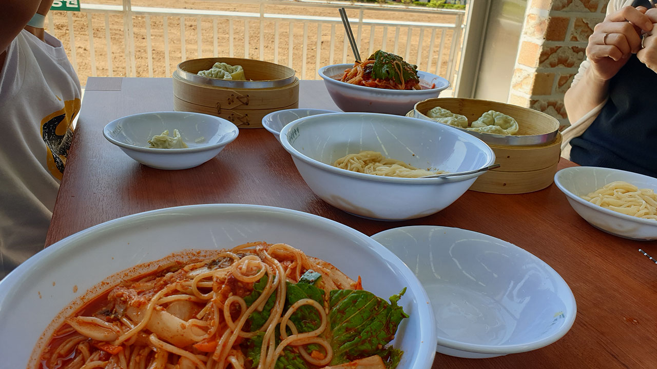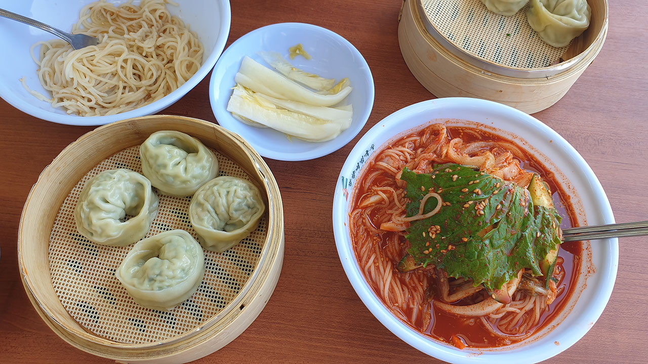 비빔국수와 만두를 함께 주문해 먹습니다.
