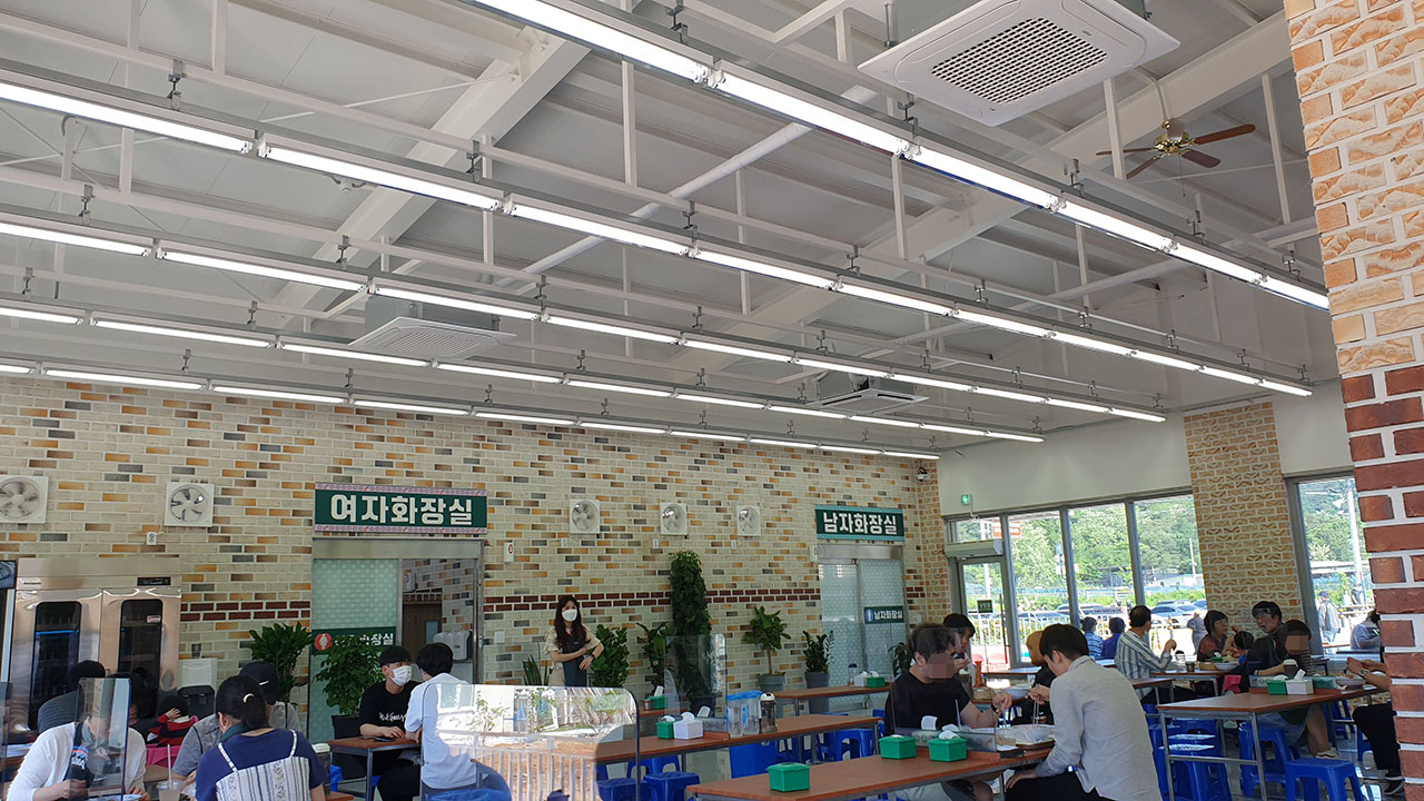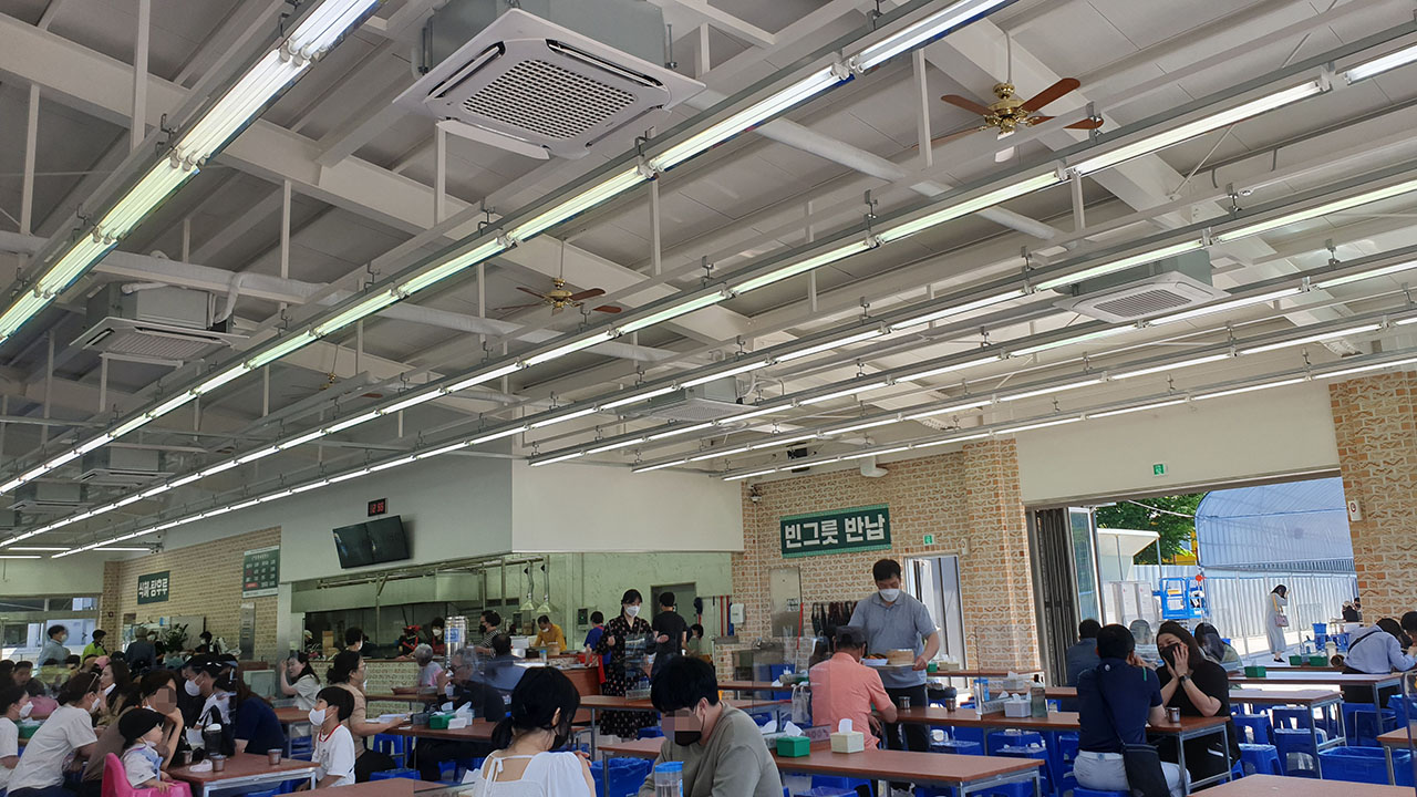 내부는 이런 모습입니다. 구관과 비슷하다면 비슷하죠. 시스템에어컨이 달려있는 등 인테리어가 조금씩 바뀐 부분은 있어도 넓고 높고 실용적으로 지은 모습은 동일합니다. 특히 저 파란색 플라스틱의자 ㅎ