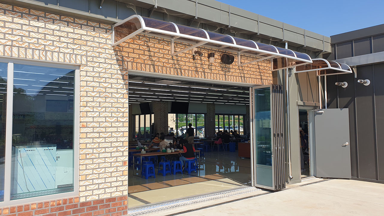 가게의 여러 방향을 이렇게 개방감있는 형태로 지었습니다.